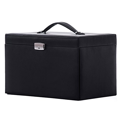 SONGMICS Black Jewelry Box Lockable Jewelry Case Faux Leather Mirrored Storage Organizer UJBC001