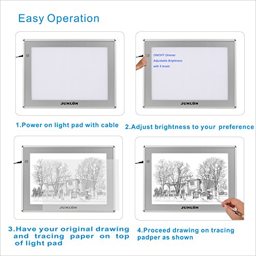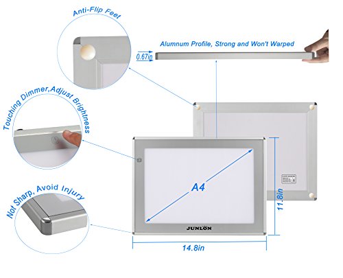 JUNLON A4 Aluminum LED Light Pad Box Tracing Board Table,Adjustable Brightness Led Pad Light for Drawing Artists Stencil Artcraft Tracing Animation Extremely Bright Tracing Pad