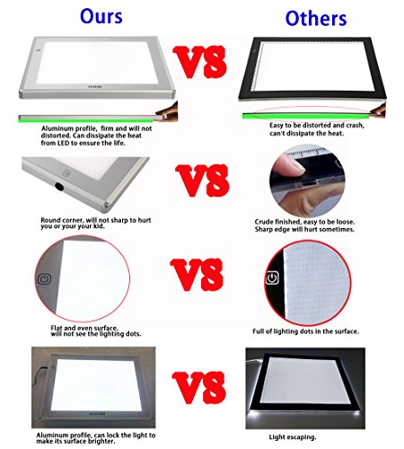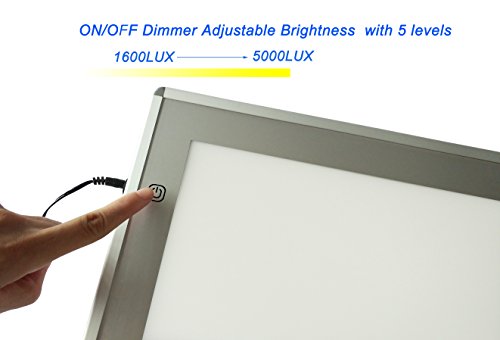 - >>5 Level adjustable brightness light table,with Eye-protected LED, No Flicker,easy to adjust the brightness from 0-1600lux-2700lux-3800lux-5000lux.