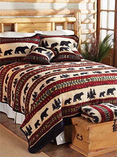 - Super soft and plush Bear Adventure blanket has a colorful striped design with black bears and pine trees