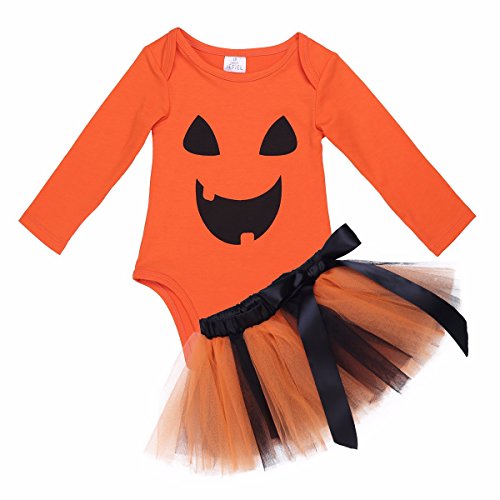 -. Title : FEESHOW Baby Girls Halloween Outfits Pumpkin Costume Long Sleeve Romper Bodysuit with Tutu Skirt