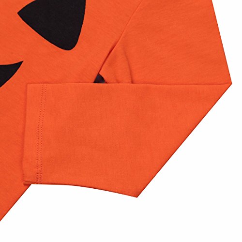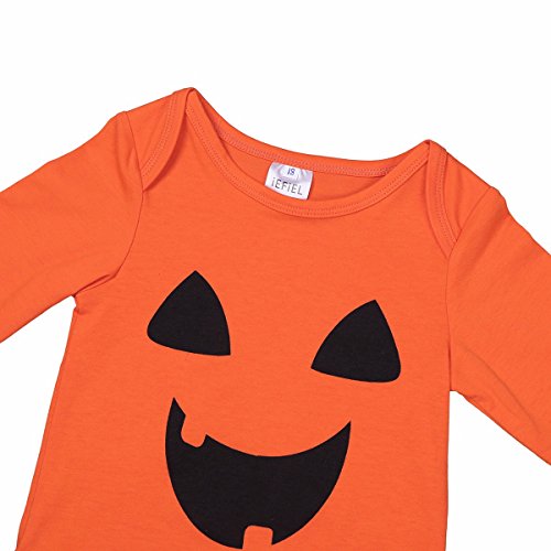 -. Feature : Infant baby girls' adorable cotton pumpkin halloween cosplay outfits / Long sleeves and ruched shoulder romper, front with a pumpkin smiling face pattern / Snap closures at bottom for easy diaper changing / Tutu skirt with elastic waistband and irremovable ribbon bow at waist / Suitable for Halloween, cosplay party, photos, holiday or daily wear