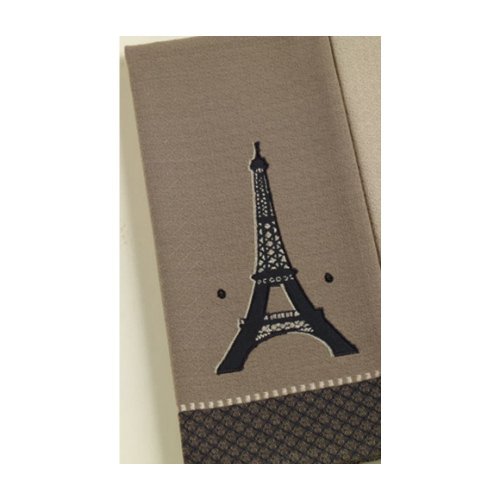 -. Title : Dish Towel - Appliqued (sewn on) Fabric Eiffel Tower Embroidered Design by Design Imports