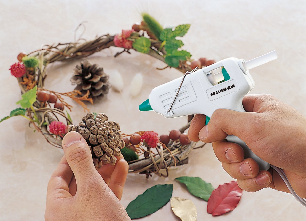 It is possible to easily attach various things to lease making, art flower, handicraft, etc.