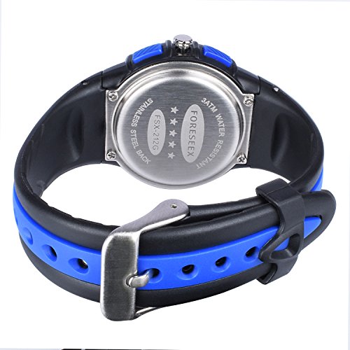 KIDS PERFECT WATCH - Perfect as kids' first watch or daily use watch. Digital and Analog display, 3ATM water resistant, back light, teach kids to tell time, day and date. No worries when washing hands, swimming or raining with the watch. Bright but soft EL back light helps to tell time in dark or at night. The band is adjustable, fits for children or teens.
