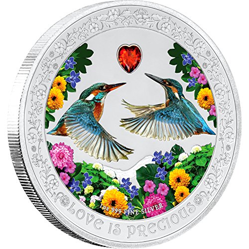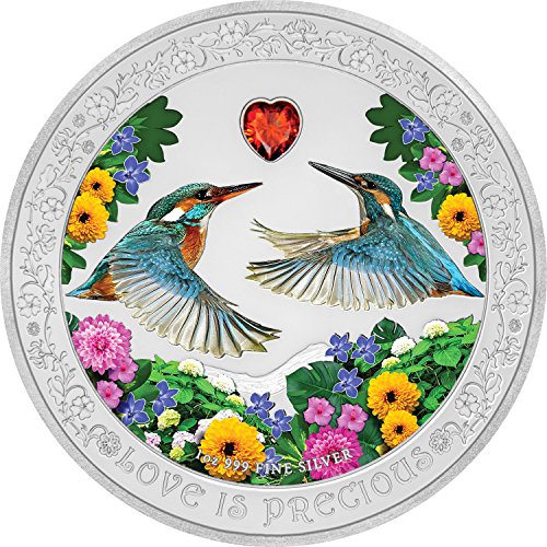 2018 NU Kingfishers - Love Is Precious 1oz Proof Silver Coin with stone $2 Perfect Uncirculated