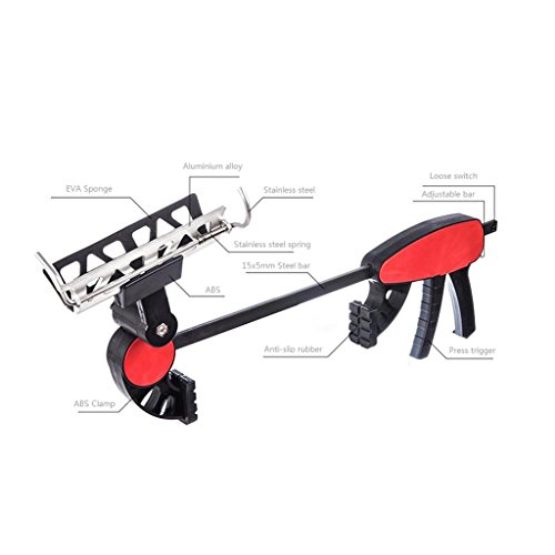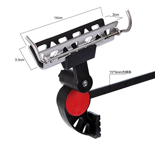 -. Feature : Novelty and multifunctional fishing bracket, use more convenient than similar product / Pull the steel bar to a proper position, press the trigger to fix the support easily, fixed range from 0-22cm/0-8.7inch, just press a small switch above trigger, can easily loose this bracket / Fishing rod rack has sensitive weight sensing, when put the rod, sP.R.Ing can automatically fix fishing rod immediately / Fixed clamp has anti-slip rubber pad, no matter what occasion it can keep stable / Rod holder equiped soft sponge pad to protect your rod