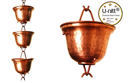 U-nitt 8-1/2 feet Pure Copper Rain Chain: Tealight Cup 8.5 ft Length #3124C