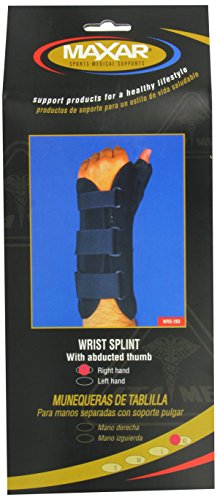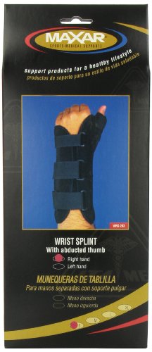 MAXAR Wrist Splint provides support and immobilization to weak or injured wrists and thumbs. It designed for treatment of injuries and post-surgical rehabilitation, especially for Basal joint Arthritis, Tendinitis. Accumulative Trauma Disorders of the thumb and wrist, strains/sprains of the thumb joint (MCP), advanced Carpal Tunnel Syndrome, and after cast removal. The unique design protects the thumb from impact or shock without any uncomfortable binding or stitch seams. Conditions: Sprains, strains, wrist injuries, injuries, surgery, sports injuries, wrist pressure, arthritic conditions, carpal tunnel syndrome, weak wrists, aching wrists, cast removal, tendinitis, wrist immobilization, basal joint arthritis, thumb immobilizationFeature