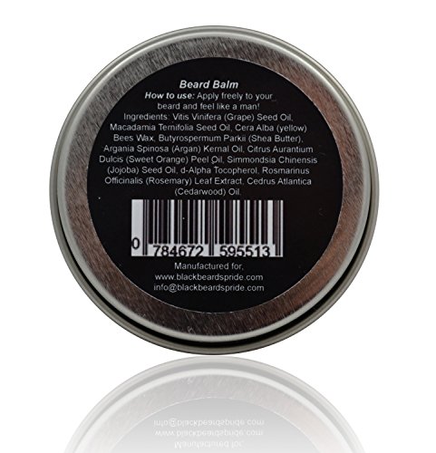 -. Binding : Misc. -. Brand : BlackBeard's Pride -. EAN : 0784672595513 -. Feature : Food Grade & All Natural - NO worries about putting Toxic ingredients in your hair and next to your mouth & skin, our product is all natural & certified food grade! / Keeps beard and facial hair soft, glossy and controlled without waxy artificial look. Doesn't dry out and flake like Others. / CONDITIONS & THICKENS with all-natural food grade botanicals, waxes and oils; No artificial scents or chemicals. / Purchase with confidence! With our Empty Can Guarantee.-If you don't love our product we will give you a full, no questions asked, refund. / Helps thicken Your Beard - With our propietary blend of Shea Butter, Beeswax, Grape seed Oil, Macadamia Oil, Argan Oil, Rosemary Leaf Extract, Jojoba Oil, Cedarwood Oil, and Sweet Orange Peel Oil, our Beard Balm holds in moisture and makes hair follicles appear thicker. -. Label : Pepaura Enterprises -. Manufacturer : Pepaura Enterprises -. MPN : citrus balm -. PackageQuantity : 1 -. PartNumber : citrus balm -. ProductGroup : Beauty -. ProductTypeName : BEAUTY -. Publisher : Pepaura Enterprises -. Studio : Pepaura Enterprises -. Title : BlackBeard's Pride Beard & Mustache Balm, Leave-in Hair and Skin Conditioner, All Natural Pure Botanicals, Butters, and Essential Oils, Suitable for all Beard and Mustache Types, Mild Cedarwood Citrus Scent, 2 Ounce Tin with Carrying Pouch. -. UPC : 784672595513