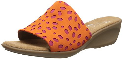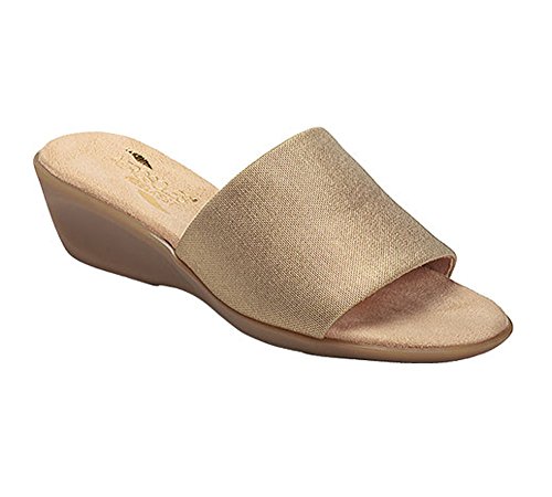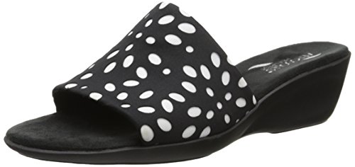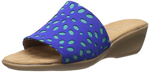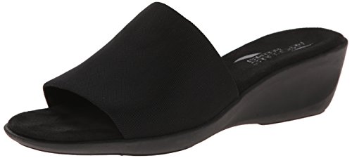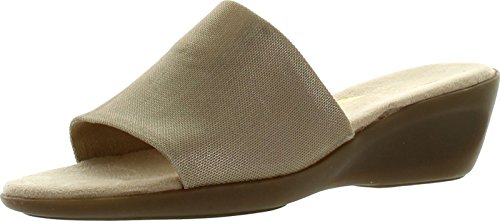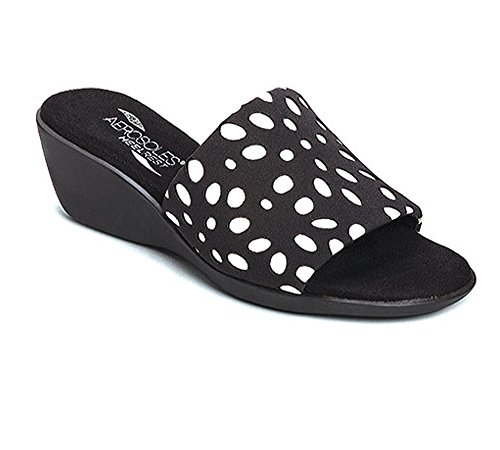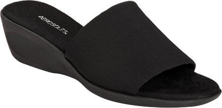 Dressed to the nines or casually attired, you're ready to go at a moment's notice in the Badminton slide from Aerosoles. The medium-height, sculpted wedge heel contributes stability and a touch of elegance to the durable fabric or polyurethane upper. Sueded fabric lining, a soft, non-slip cushioned footbed and a flexible rubber sole add all-day comfort to this versatile shoe.Feature