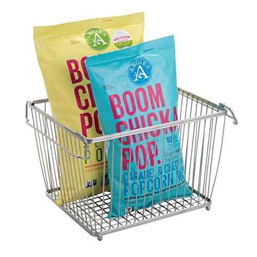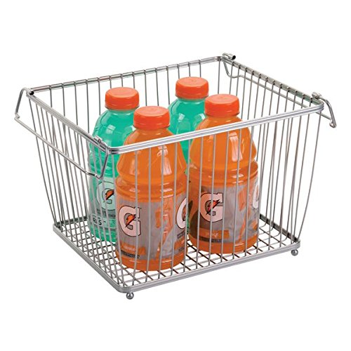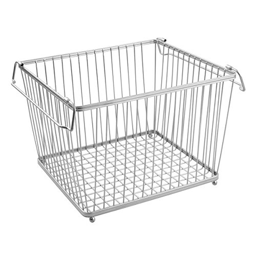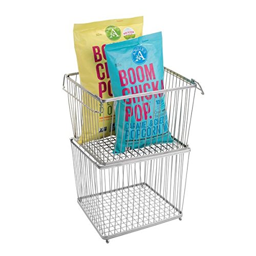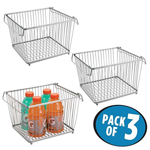 mDesign Stackable Wire Storage Basket for Kitchen, Pantry, Cabinet - Pack of 3, 12", Silver