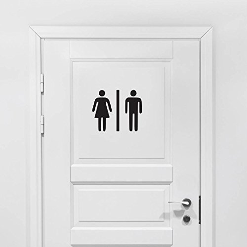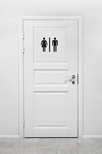 Bathroom Vinyl Decal - Office Bathroom Decal, Mens Womens Bathroom Vinyl Sticker 7" W X 9" H (Black, Matte)