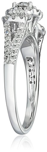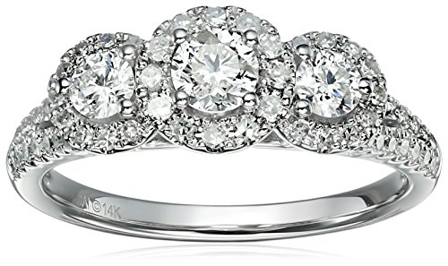 -. Title : 14k White Gold Diamond 3-Stone Round Halo Frame Engagement Ring (1cttw, H-I Color, I1-I2 Clarity), Size 7