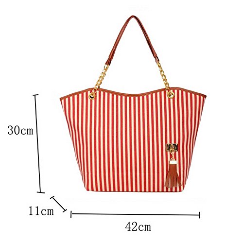 Fashion Shoulder Handbags, Retro Casual Large Capacity PU Leather Tote Bag Black Stripe