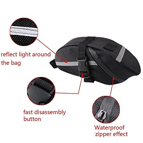 Safety Cycling: Reflective strips on three sides for increased nighttime visibility; The buckle on the back of the bag allows you to install the tail lights
