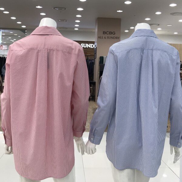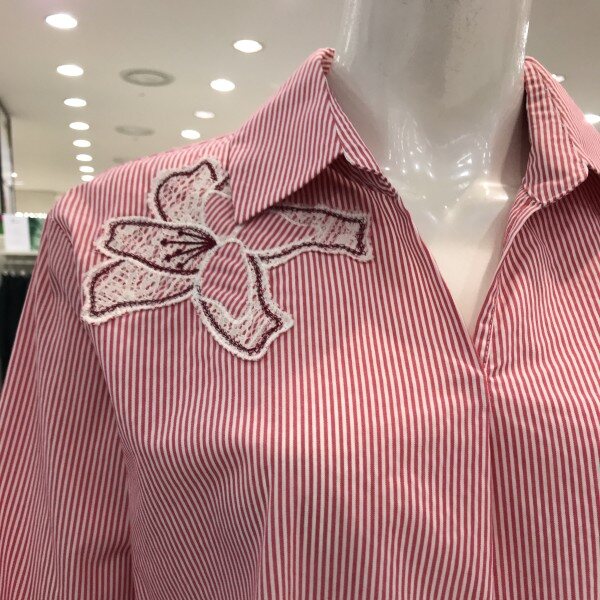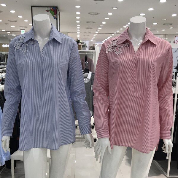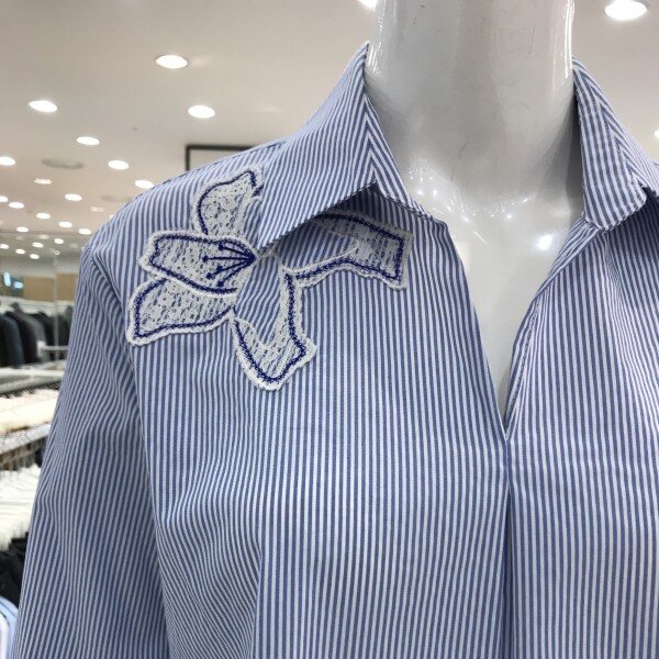 꽃 자수가 멋스럽게 포인트인스트라이프 셔츠입니다