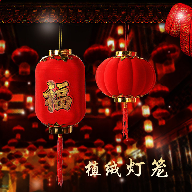结婚喜庆庆典用品新年春节年货植绒连串小红灯笼绒面装饰品小挂饰