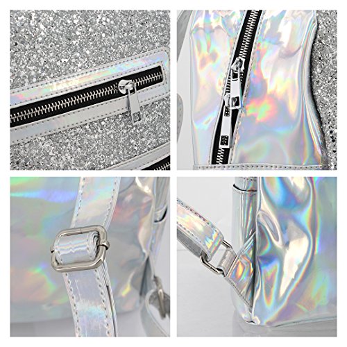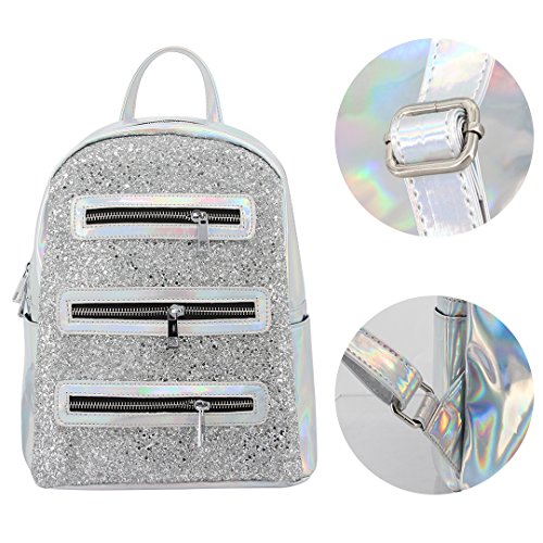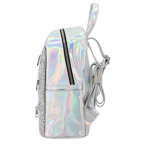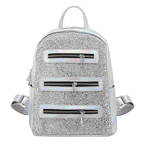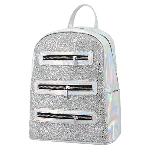 Batique Women Teens Shiny Sequin PU Backpack Hologram Zipper Daypack School Bag Casual Shoulder Bag