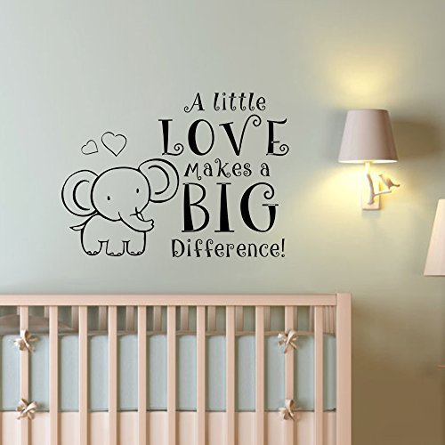 Wall Decal Decor A Little Love Makes A Big Difference Baby Nursery Bedding Bedroom Decor Wall Decal Vinyl Sticker Art Elephant Theme(Black, 16"h x22"w)