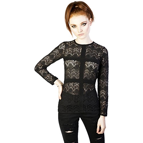 Product DescriptionNightmare Lace Top Women's Black By Disturbia. Top is made of 100% Cotton Portuguese stretch lace with elastic bands. It has back button fastening and long sleeves.0
