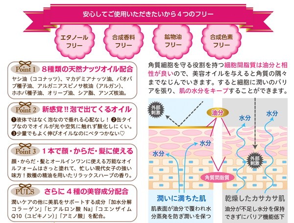 水、ホホバ種子油、グリセリン、BG、LPG、オリーブ油、オレイン酸ポリグリセリルー10、ステアレスー20、PEG