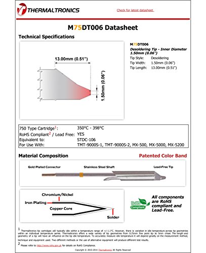 Thermaltronics M75DT006 Desoldering Tip - Inner Diameter 1.50mm (0.06") interchangeable for Metcal STDC-106