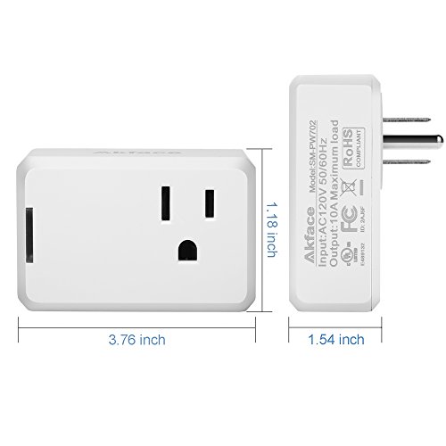 Akface Smart Plug Mini Outlet, Wi-Fi Enabled, No Hub Required, Works with Alexa Echo Dot, Wireless Remote Control Outlet Switch, Support 2.4GHz Wi-Fi Hotspot, for iOS Android (iPhone iPad ,Samsung LG)