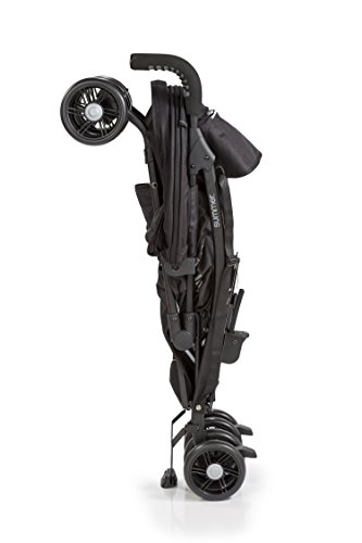 Easy to push with comfort grip, heat resistant foam handles and smooth glide wheels.Simple, 1 handed standing fold with auto lock and convenient carry strap