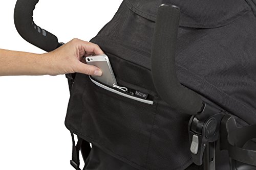 Oversized, 1-hand adjustablecanopy with zip-out extension to block 99.9% of UVA and UVB rays