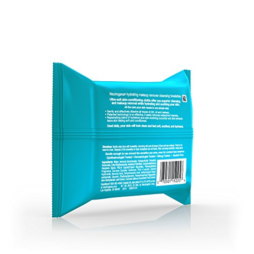 Remove makeup and hydrate your skin in one simple step with Neutrogena Hydrating Makeup Remover Cleansing Towelettes, pre-moistened with soothing skin ingredients. These cloths cleanse and remove makeup while hydrating your skin. Each ultra-soft skin-conditioning towelette gently dissolves all traces of dirt, oil, and makeup--even waterproof mascara. The formula contains a replenishing blend of hydrators and soothing cucumber and aloe extracts to leave skin feeling soft and conditioned. This convenient, re-closeable pack includes 25 sheets.Feature