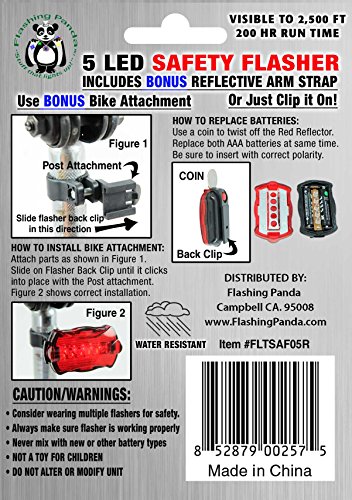 Studio : Flashing Panda Publisher : Flashing Panda Product Description Flashing Pandas safety light offers high quality and performance at an unbelievably low cost. Use it on your bike, wear it on your belt like a pager or on your arm (with the included arm band) while jogging or walking. Clip it to the stroller, or to your dog's collar. Can also be used as a warning light on the door, etc. Comes with a pager clip and bike quick release attachment. Uses 2 x AAA batteries (included). Features 5 red LED lights and 6 modes of operation. The unit is water-resistant. Uses: Jogging; Walking; Bike safety tail light; Stroller safety light; Stationary safety light: canopies, tents, pathways, etc. 0