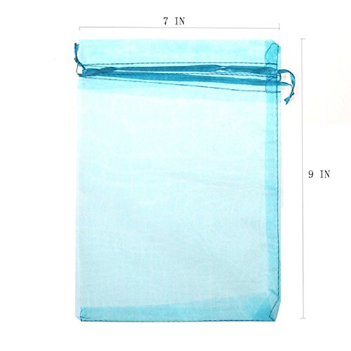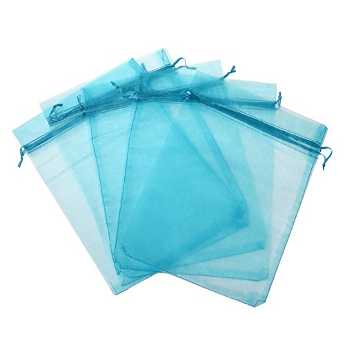 KUPOO Lot of 50 7" x 9"Drawstring Organza Pouch Strong Wedding Favor Gift Candy Bag (Turquoise)