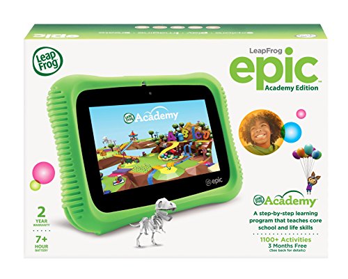 Explore, play and learn with the LeapFrog epic, Academy edition. This Android-based learning tablet includes exclusive full-access to LeapFrog Academy, the new learning subscription service from LeapFrog. The tablet is packed with kid-appropriate on-board learning content plus access to leapfrog's award-winning library including hundreds of games, apps, videos and music. Parental controls allow you to set time limits, manage apps and services, and add features such as web, Netflix and Android apps as your child is ready. The tablet is kid-safe right out of the box and features a customizable home screen that lets your child create an environment, add stickers and more, inspiring their creative play and self-expression. Uniquely designed to grow with your child, this tablet offers endless learning and creative play.Feature