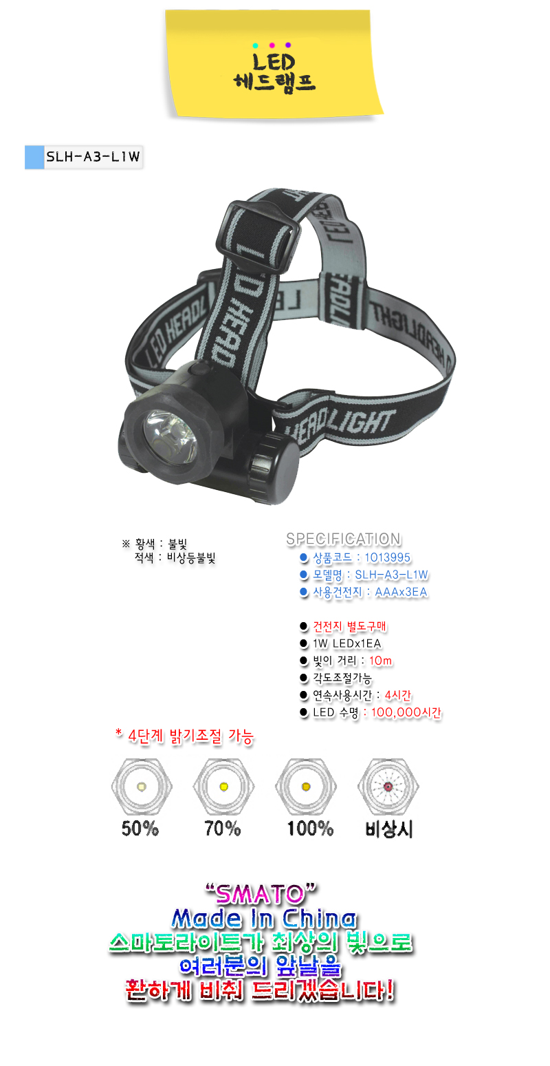 LED head lantern for mountain climbing SLH-A3-L1W Four-stage brightness adjustable rental fishing Sumatito -1013995