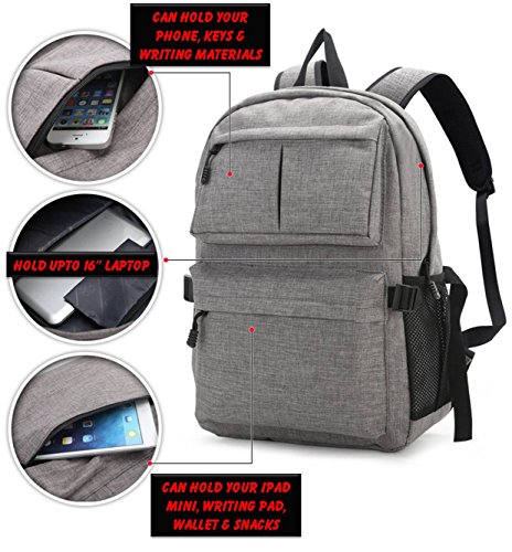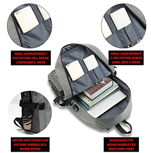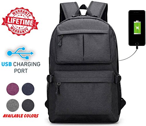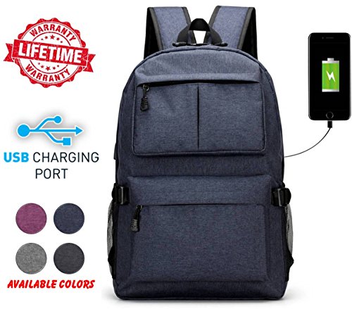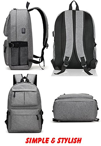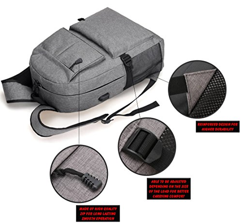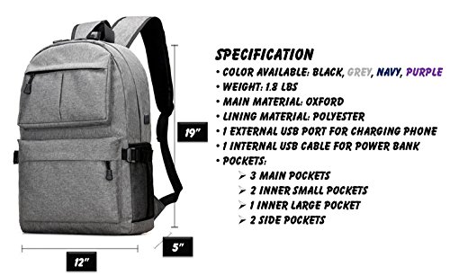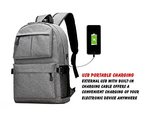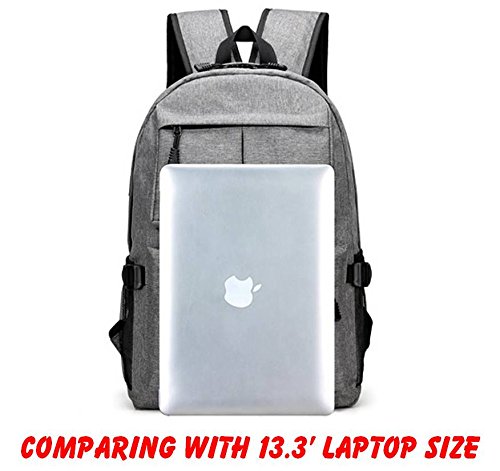 Our product comes with external charging USB port. With this built-in external USB port, you can charge your mobile devices in an easier and more convenient way with the backpack unopened. You can connect and charge your phones and mobile devices from your power bank inside backpack through the external USB port. It has a main compartment with a zipper that is enough to keep your laptop including other items.