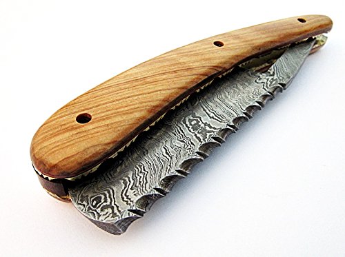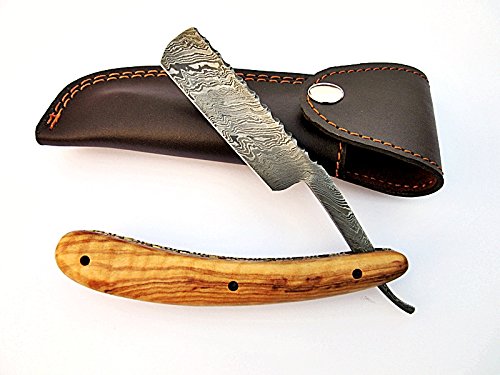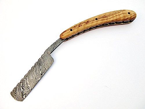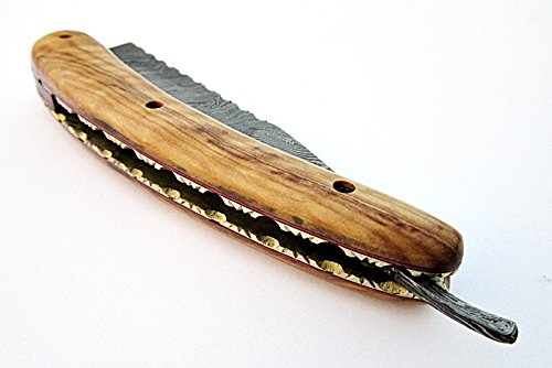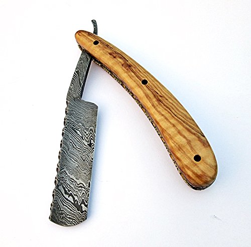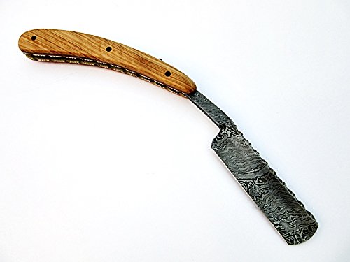 -. Feature : Damascus Steel Straight Razor / Beautiful File Work on Olive Wood Handle / Great Piece of Art / Beautiful Pattern Sharp Edge Blade / Stunning Handle with File Work