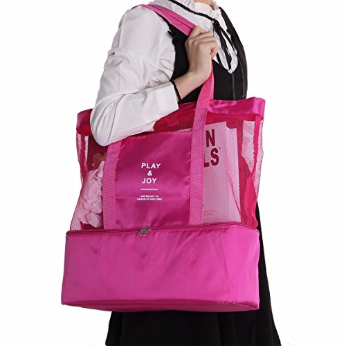 Set Include: 1x Tote Bag Condition: Brand New Material: Nylon Mesh Color: Multicolor(as pictures show) Size(L x W x H): 15.0 x 6.0 x 16.5 inch/38 x 15 x 42cm(exclude handles) Features: Extra Large Insulated Mesh Cooler Tote Bag with Durable Quality Handles for Outdoor Use. The upper section made of soft nylon mesh allow wet towels and clothing to dry easily and lots of room. The zippered cooler compartment with strong canvas and insolated materials will keep your food and drinks cool and fresh. Spacious size for your beach towels, swimming suite, kids toys, and other beach essentials without feeling too bulky. Suitable for outdoor picnic, BBQs, park beach camping, fishing, trips and travel. 0 |