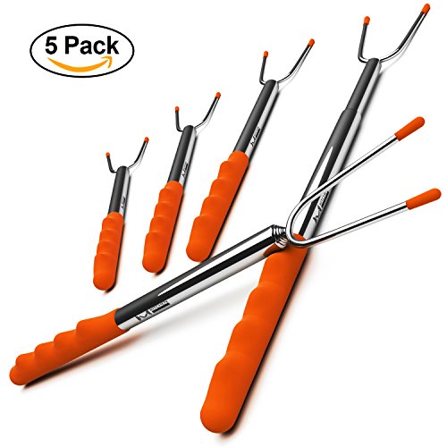 - PREMIUM QUALITY MARSHMALLOW STICKS: mKitchen World Marshmallow Roasting Sticks are made from Non-Toxic Heat-Treated FDA Approved 304 Stainless Steel, guaranteed not to rust in time. The comfortable rubber handle with finger indents gives you a firm, steady grip. The two prongs prevent marshmallows from spinning on stick when melting.