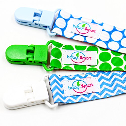 -. Title : Baby Pacifier Holder Clip - 3 Pack, Premium, Unisex Double Sided Designs, Rust Free and Safe Pacifier Clip, Works with Teething Ring, Soothie Pacifiers, Baby Shower Gift and Great for Baby Bibs