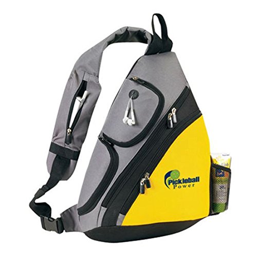 -. Brand : Pickleball Marketplace -. Color : Yellow -. Feature : Will easily hold Pickleball paddles, balls, clothes, and numerous personal items. / Urban sport sling backpack made of 600 denier polyester with PVC backing. / MP3 pocket with ear port inside of side zippered pocket and extra inside mesh opened pocket of side zippered pocket. / Diagonal dual zippered opening to main compartment. Diagonal dual zippered front pocket. / Zippered accessory holder on fabric back strap. Mesh water bottle holder. -. PackageQuantity : 1 -. ProductGroup : Apparel -. ProductTypeName : LAGE -. Size : Large -. Title : Pickleball Marketplace Urban Sport Sling Backpack - New/embroidered - Yellow