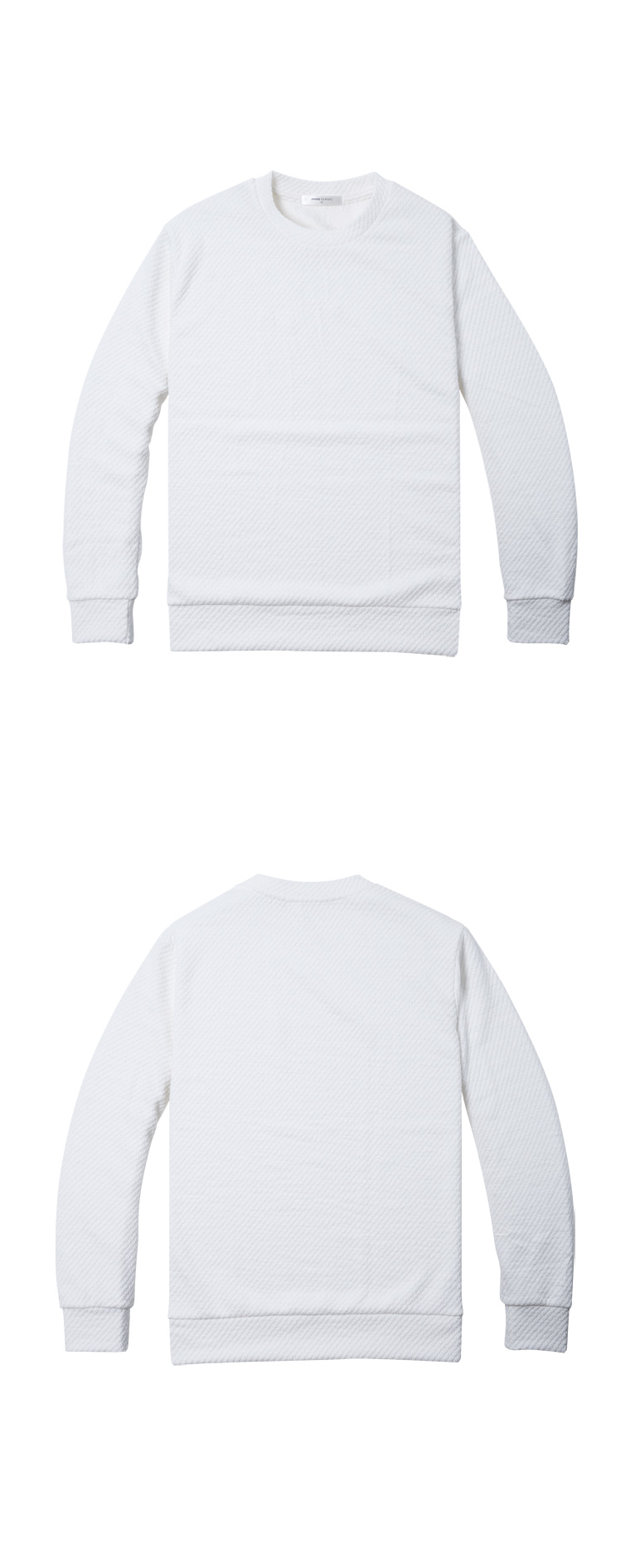 유니크한 사선패턴 조직의 원단이 매력적인 니트맨투맨입니다. 톤온톤의 사선조직으로 착용시 편안하고 멋스러운 핏을 느낄 수 있습니다. 독특한 소재감과 조직감으로 단품코디가 용이하며, 슬랙스나 치노팬츠 등과 스타일링 하기에 좋은 아이템입니다. 특히 셔츠와 레이어드 연출하면 잘 어울립니다. 가을부터 봄까지 착용가능해서 활용도도 높습니다.