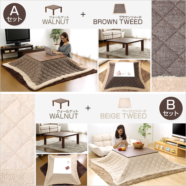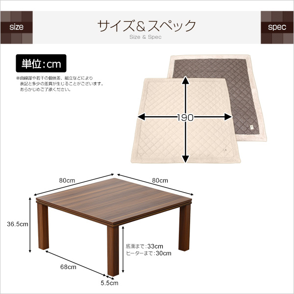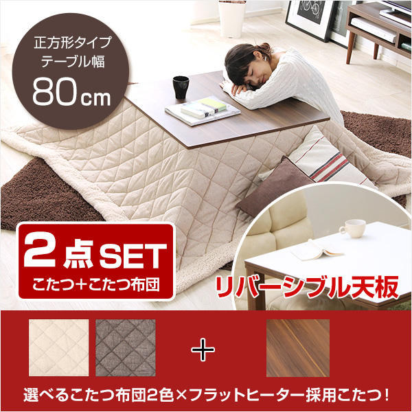 ●80cm幅・正方形のこたつテーブルとこたつ掛布団が付いた2点セット!