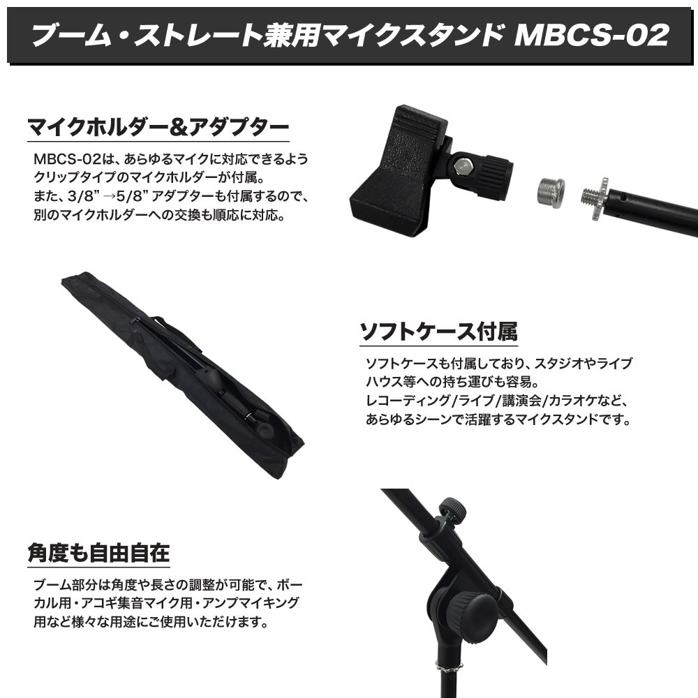 "MBCS-02" is a compact foldable boom type microphone stand.