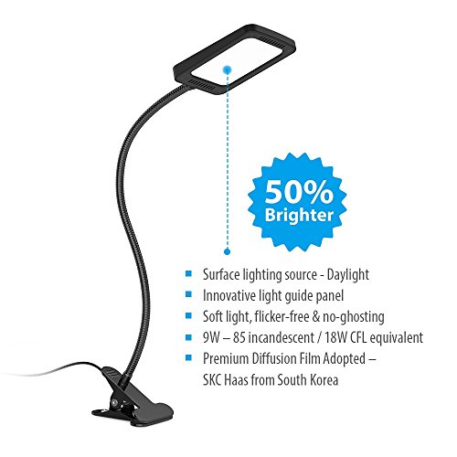 - Eye Protection Desk Lamp. Latest surface lighting source and innovative light guide panel help to create a flicker-free, anti-glare daylight light without ghosting with the color temperature of 5800K ~ 6000K. Unlike incandescent or florescent lights, it doesnt contain mercury or other environmentally harmful substances.