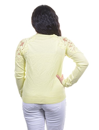 BarIII Long-sleeve Lace-inset Sweater Pale Lime Yellow Size XS New with tag