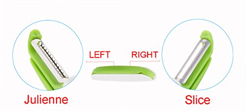 - VERSATILE – Double sides with different kind of blades(serrated & julienne), Julienne for making strips, Serrated for making flat slices