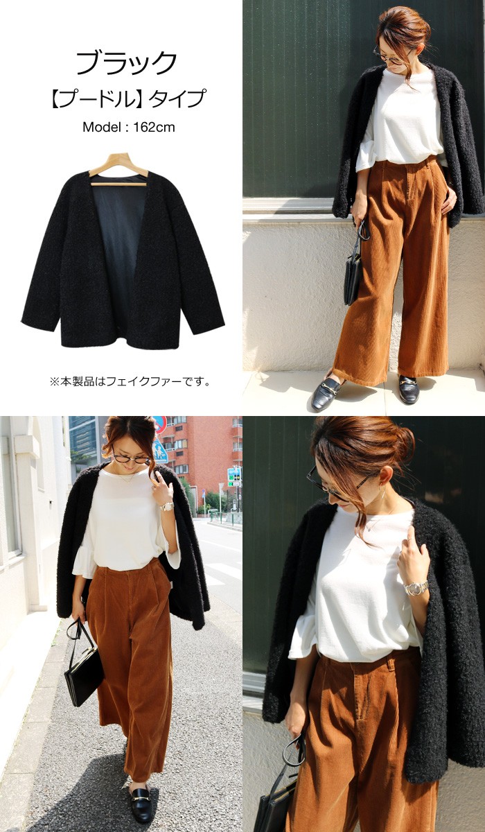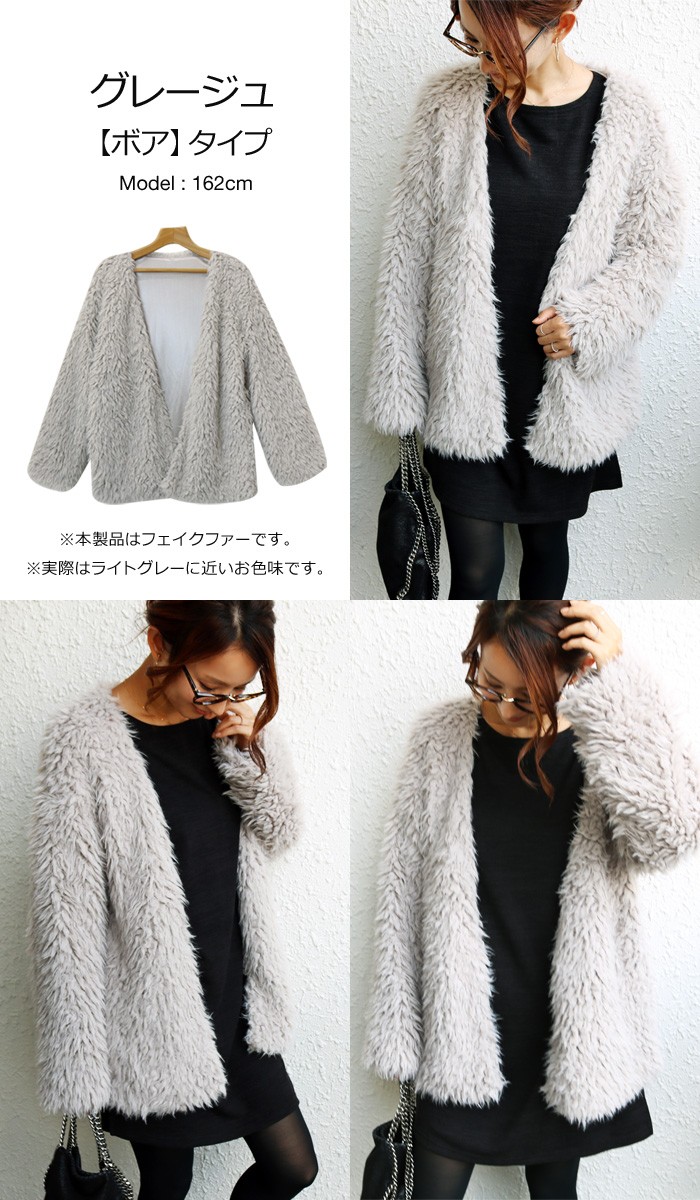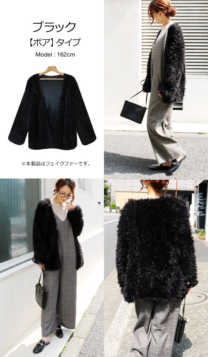 ボリューミィで今年らしさバツグンのファー・カーデポケットなし、ノーカラーのシンプルデザイン。着心地が軽く、さらっと羽織るのに最適な1枚です。普段のコーデにさらっと取り入れるだけでイッキに今年らしい印象に。裏地付きなのも安心ポイントです♪MODEL:身長162cm