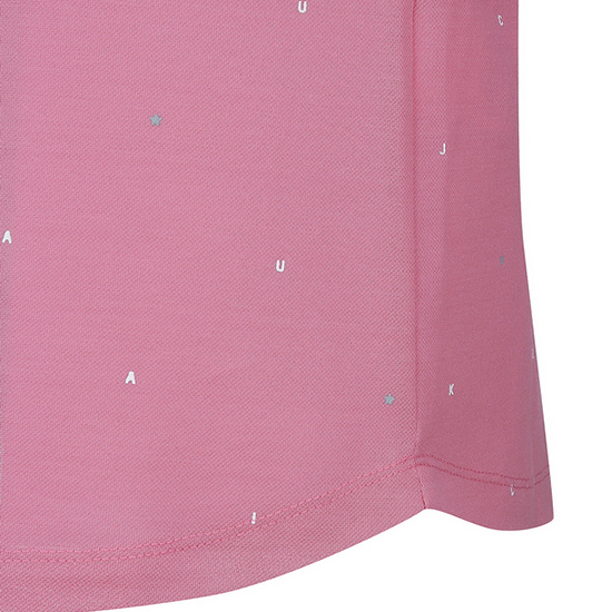- 로고 알파벳 올오버 나염을 적용한 여성 티셔츠.