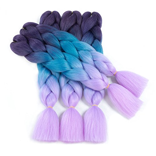 - Hair Color: Purple to Blue to Viole Ombre Color, We have Many other colors available, include 2 tone or 3 tone, you can select different colors braids for different occasions, such as office, cosplay parties and home.